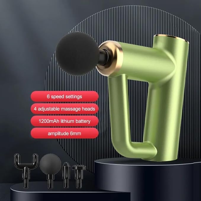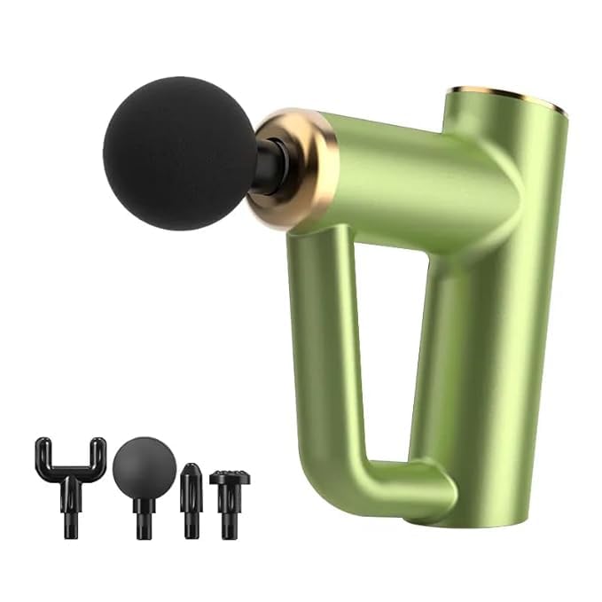 Deep Tissue Massage Gun for Pain Relief – Powerful Handheld Percussion Muscle Massager with 4 Heads, Quiet Motor & Rechargeable Battery for Athletes, Recovery, and Fitness