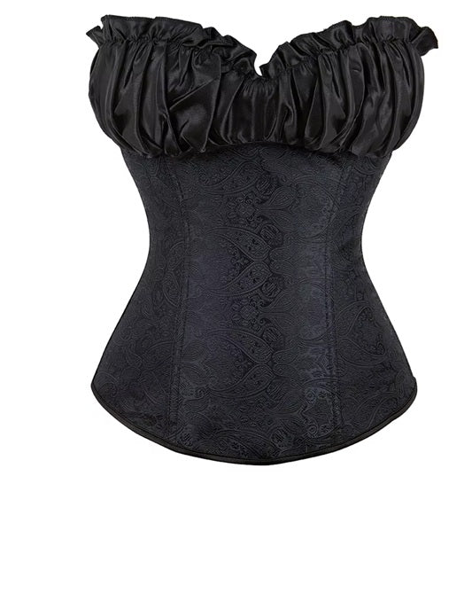 Satin Lace Corset Top for Women – Strapless Bustier Blouse with Ruffle Detail | Elegant Party & Evening Wear
